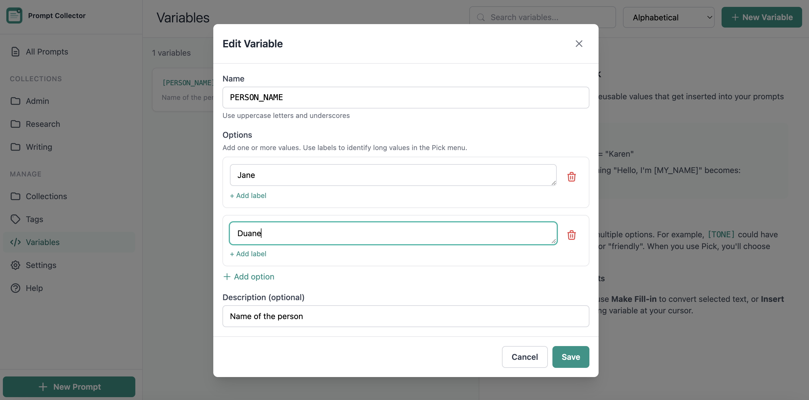 ✅ Dashboard to manage everything — prompts, collections, tags, and variables